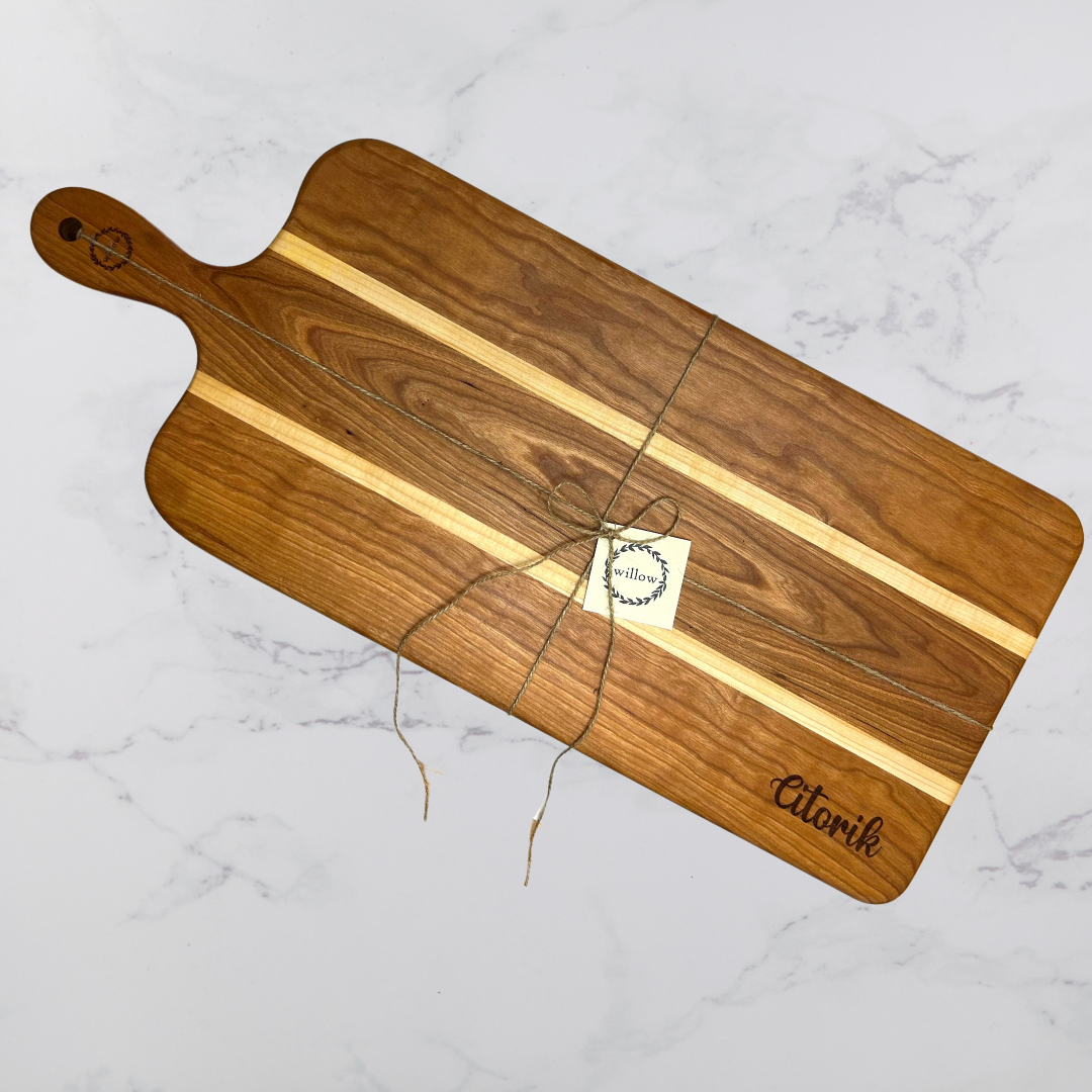 Our best selling Étouffée Charcuterie Board is made of Vermont Cherry with Vermont Sugar Maple accents, quality hardwood species that are renowned for their beauty, strength and longevity.