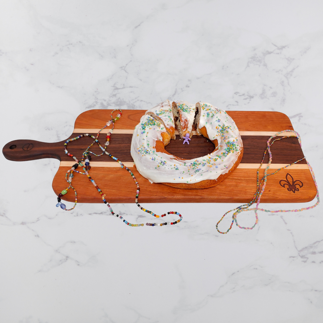Our best selling Gumbo Charcuterie Board is made of a mix of three quality hardwood species – Black Walnut, Vermont Cherry and Vermont Sugar Maple – and is not only beautiful but extremely durable.